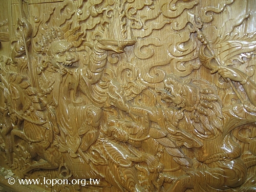 原本厚重硬實的台灣檜木,經過木雕家的巧手之後,畫面有了景深與層次,不僅本尊的容貌、衣飾栩栩如生,庭台樓閣維妙維肖,連雲朵都能表現得輕靈變幻,每一個細節都值得再三欣賞。