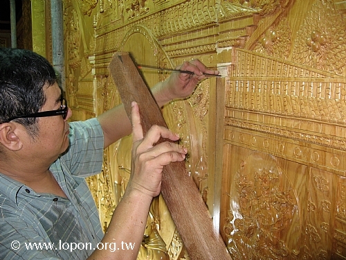 「幾乎可以說,以後很難有機會再製作這麼大幅的木雕了。不只是木料取得有困難,老一輩的木雕家慢慢凋零了,新一輩的木雕家手藝不同,刻不出這樣的作品。我國小畢業就拜師學木雕,今年五十幾歲了。當年跟我一起學藝的師兄弟還有好幾個人在做木雕,不過說到木雕唐卡,全台灣的只有我一個在做。除了噶居寺,世界上沒有其他地方用木雕來做唐卡。因為 導師,我才有這個機會。」