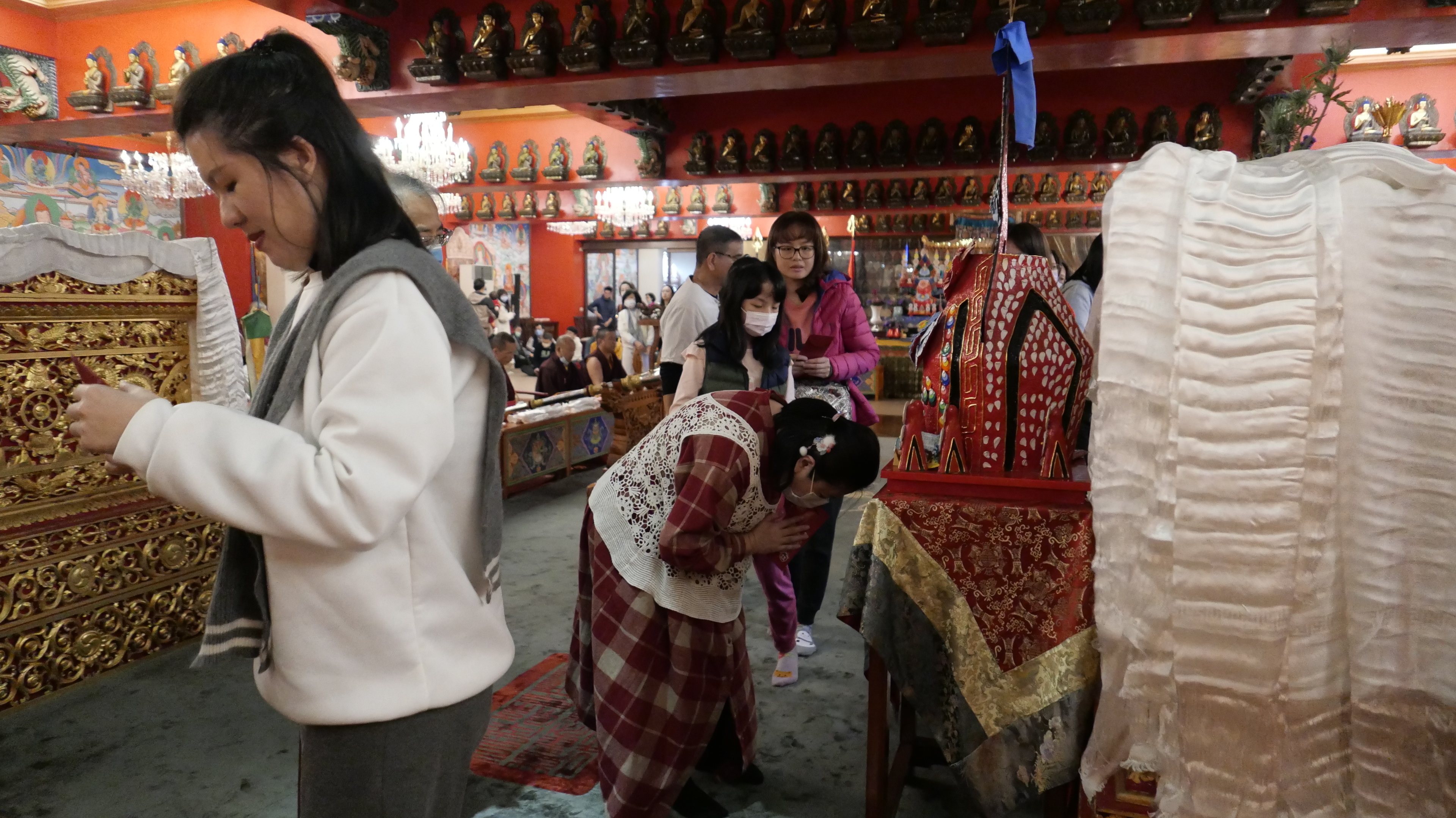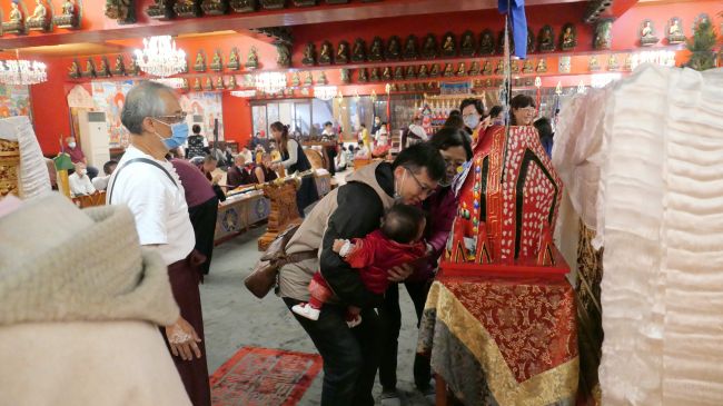 弟子和信眾歡喜上前供養,並領受 上師仁波切慈悲加持,以及賜予紅包。接著領受 殊勝的瑪哈噶拉三門,以及甘露加持。