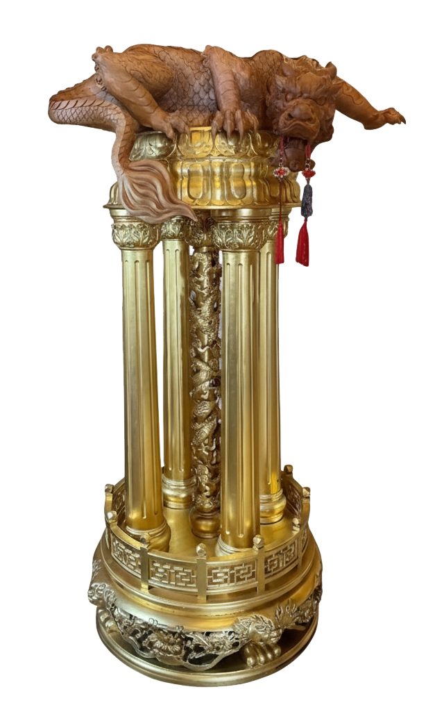 機緣巧合, 上師仁波切見到這雕刻靈巧的木雕螭龍,便買了回來。巡視殿內,就放在這八大菩薩旁的檯座好了!「在屋頂酷熱,殿內涼爽又當裝飾,得來全不費功夫!」 上師呵呵一笑。嘿!還真的是剛剛好!