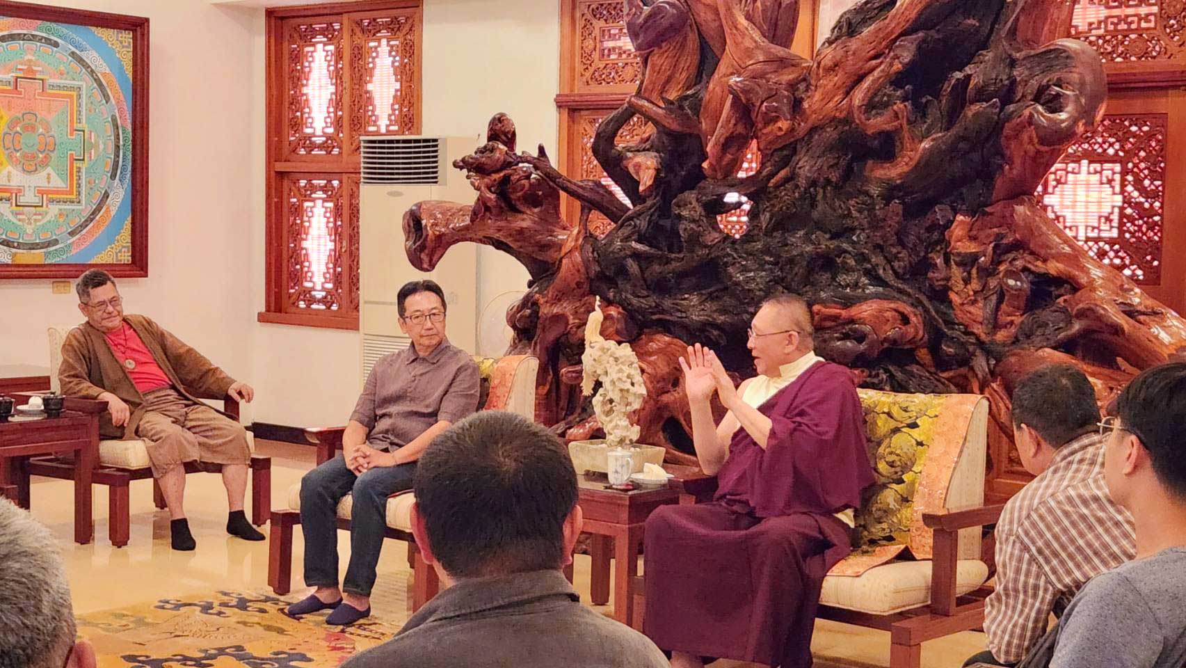 十二月的冬陽斜照進如來殿四樓,一群來自永興家具的訪客,帶著對產業未來的困惑與對生命意義的探問,在這個午後,與洛本天津仁波切展開了一場跨越物質與精神、產業與修行的深刻對話。