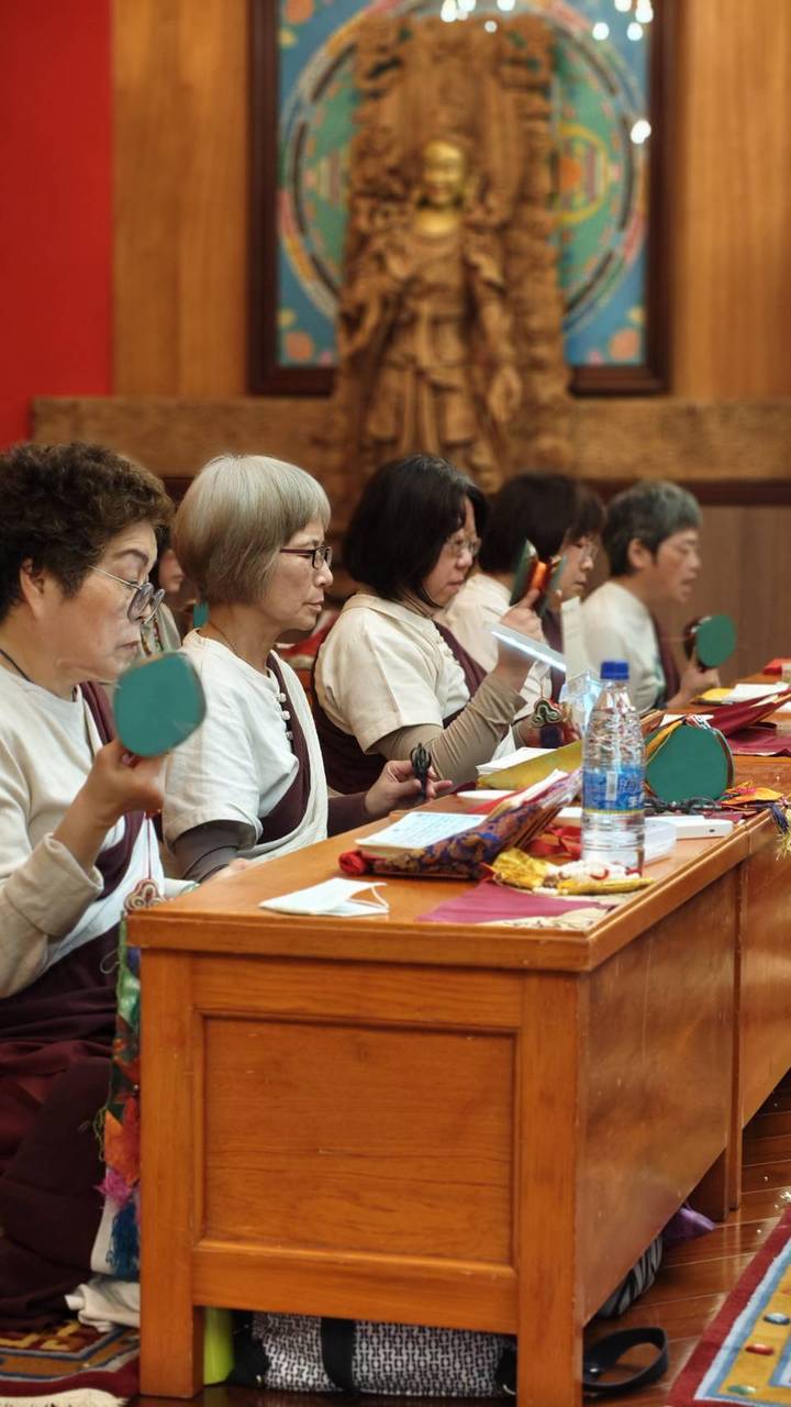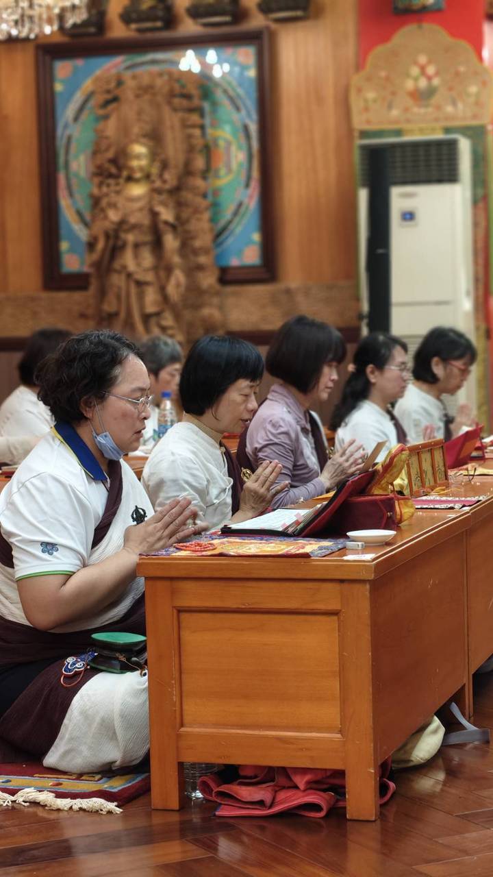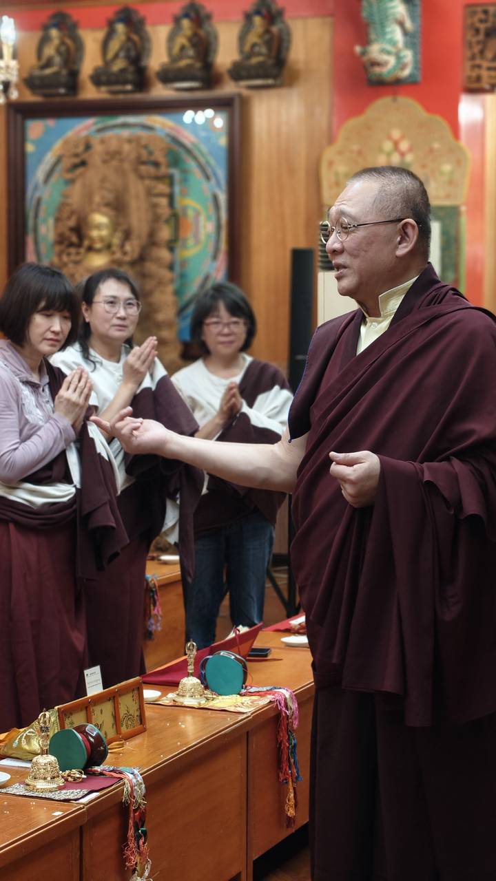未時法會圓滿,眾弟子分享供品,皆蒙加持。洛本天津仁波切嘗言:「一滴水落,漣漪生焉。人心應佛心,樂空自匯聚。」誠哉斯言!