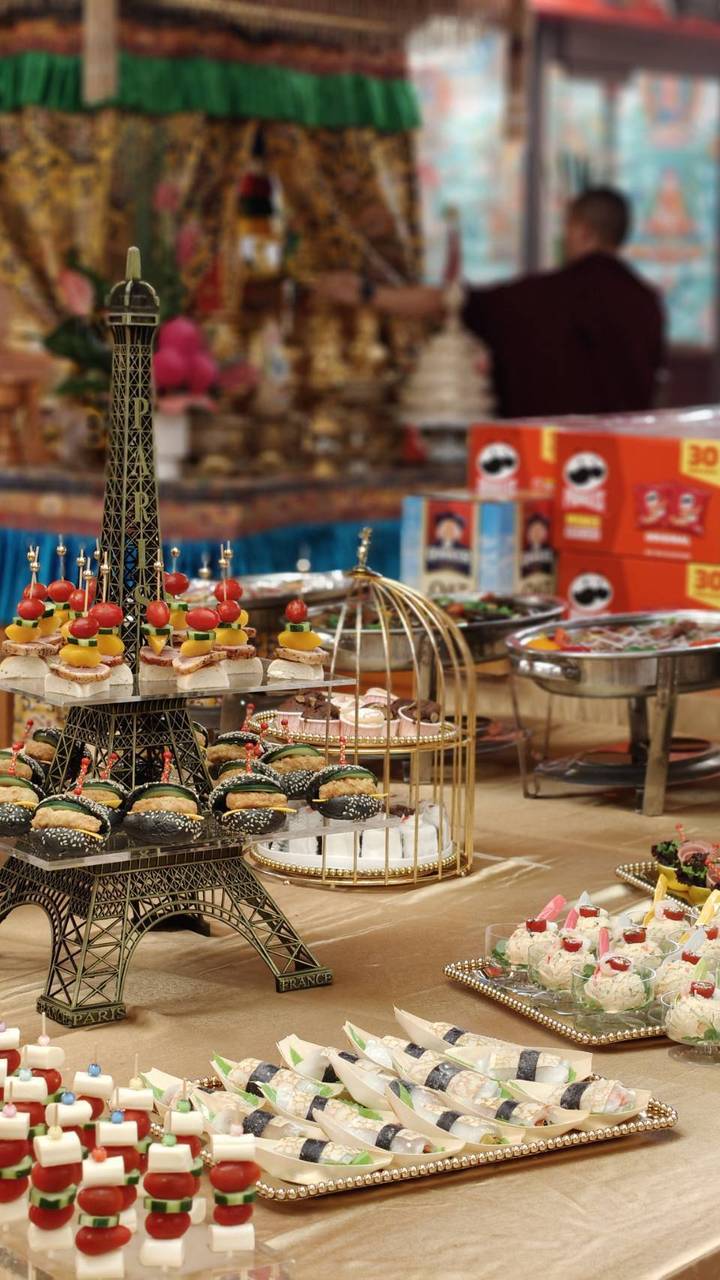 壇城莊嚴,供品豐盛:糖餅如雲,鮮果盈筐,更有西洋佳餚,色香味俱全。辰時既至,上師仁波切率眾喇嘛上座啟修,以禪定觀修力轉化供品,使凡物成甘露,俗食變聖饈。