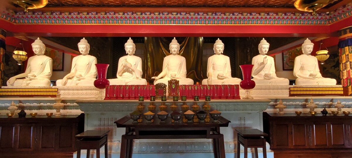 關於這組聖像的誕生,仁波切曾如是開示:「之所以造七佛聖像,乃因為師在禪修中憶及七佛尊容,而令不丹雕塑工匠依吾意,先泥塑,再翻纖維製模,指導張敏琨精緻修改,特別是手印、唇部、容顏等處線條。造型確定,而後委請名石雕家王秀杞老師斧鑿而成。排列順序,乃遵傳統,並與文殊菩薩相應而成就此吉祥莊嚴。」
