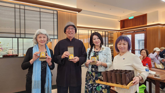 王老師與友人們在參訪之餘,誠心供養上師並隨喜參贊寺方。知客陳雅惠執事代表寺方,致贈每位貴賓一只特製香包,作為這份殊勝佛緣的見證。