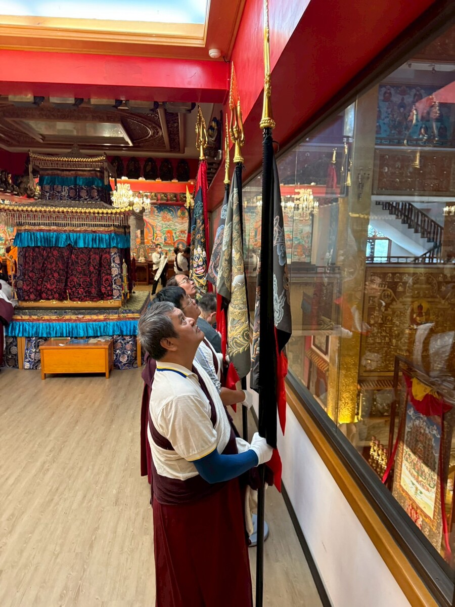 歲次乙巳,臘月冬將盡。雖然立春尚有幾日,但南國的地氣已隱隱動了生機,透著幾分「春意欲萌」的騷動。在這送舊迎新的時節,噶瑪噶居寺迎來了一年一度的盛事。台北、台南、高雄三地的護法大旗——瑪哈噶拉與瑪哈噶里,於今一月三十一日,正式歸返山門,回寺安座。