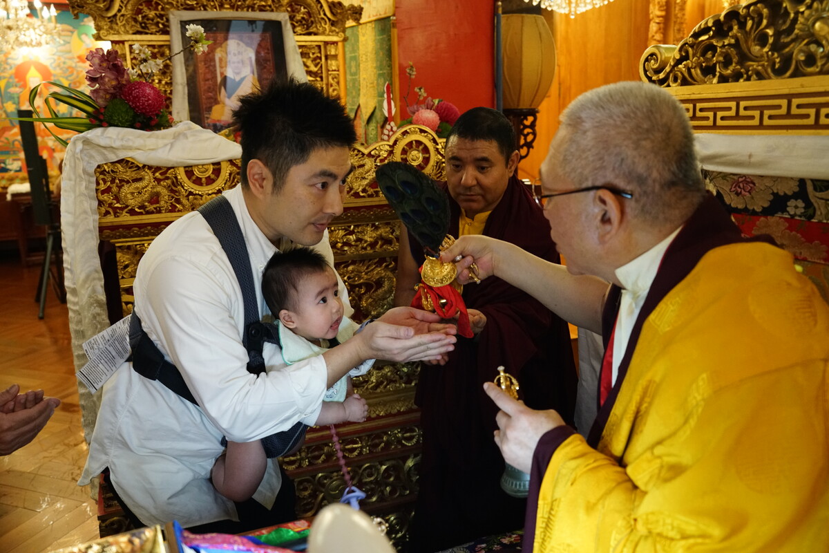 「為表達我們甚深的感謝、清淨的三昧耶和深切的敬信,我們很榮幸為閣下獻上Tenshuk(長壽法會),經由此吉祥供養,我們一心祈禱仁波切長壽安穩的壽命和良好的健康,為一切眾生的廣大利益法輪常轉。」