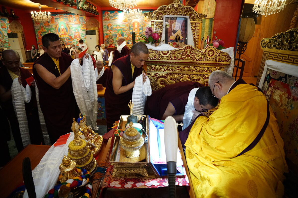 一大早,暖暖的陽光以明亮的金黃色彩揭開淡淡三月天的序幕;前一天的陰雨綿綿隨著2月離去的腳步悄然隱退。莊嚴的長壽佛壇城早已準備妥當;幾位抵臺未久的喇嘛於短暫的休息之後,與十幾位在臺喇嘛齊登場,如來殿祖師堂內,殊勝難得的長壽佛法會盛大起修;不僅因為連續五日、不僅因為印度與臺灣喇嘛共同修法,隆德寺僧團特別來信向尊貴的赤巴 洛本天津仁波切致意: