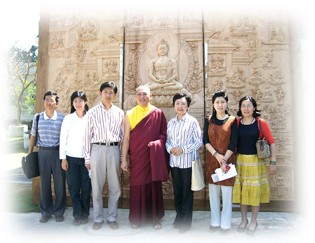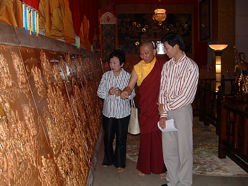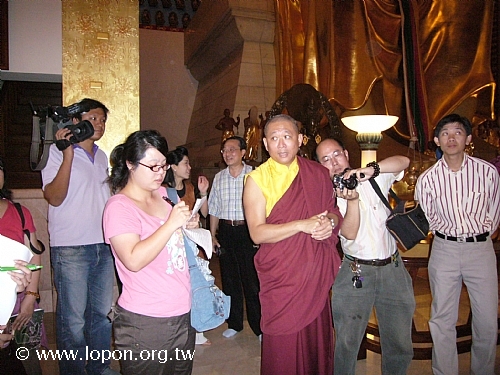 4月7日,台南縣縣長夫人郭椿華女士、縣政府文化處葉處長澤山先生、博物館科林科長,聯袂參訪本寺,欣賞巨幅木雕唐卡,多家媒體記者也蒞臨採訪這項文化藝術盛事。
