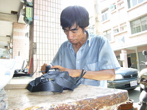 阿輝的現職是製鞋師傅。 |