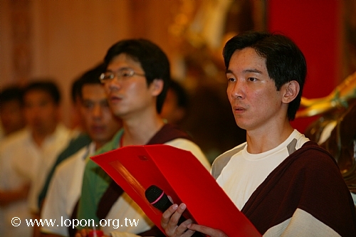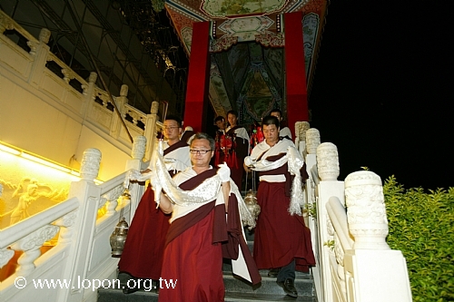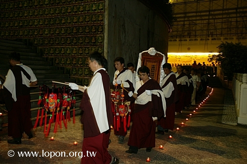 謝監院持香棒、卡達,引領先人之靈前往超薦法會的壇城。 |