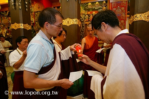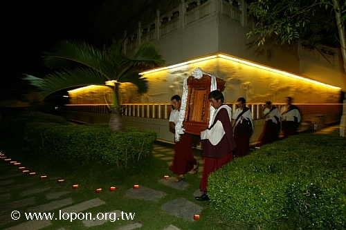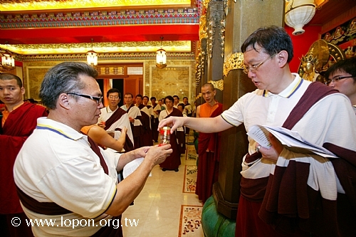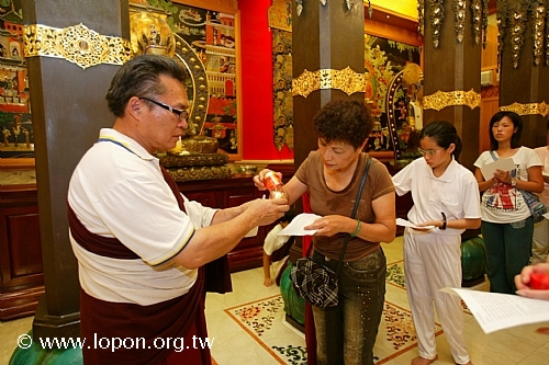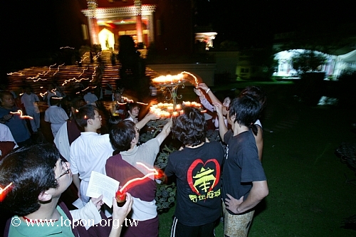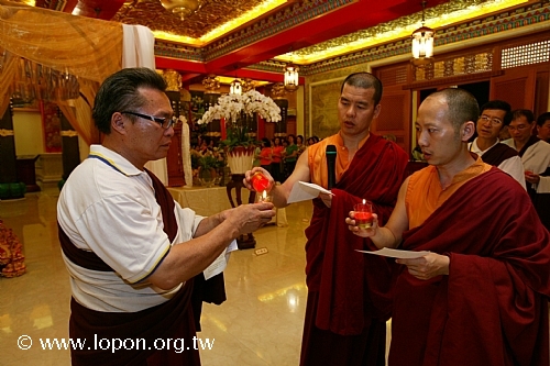 謝監院從 導師座前引燃油燈 |