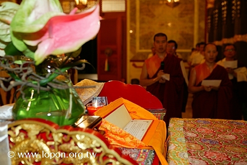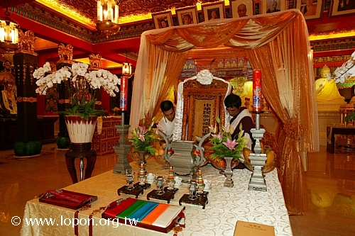 導師的法座上,法本已翻開,意謂 導師親臨於此。 |