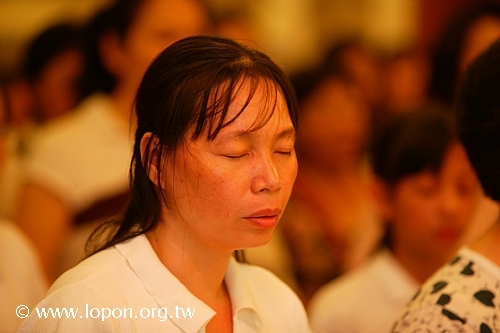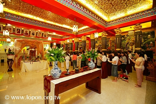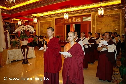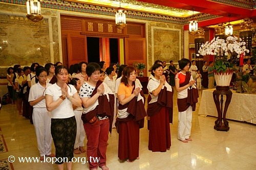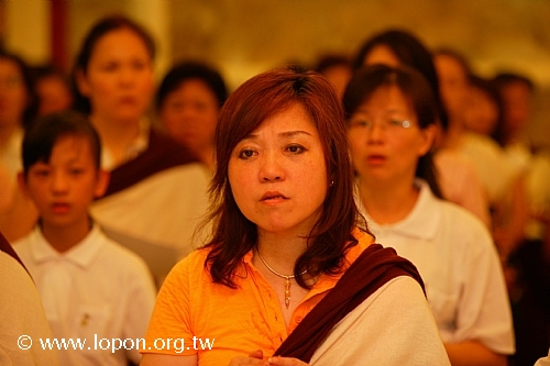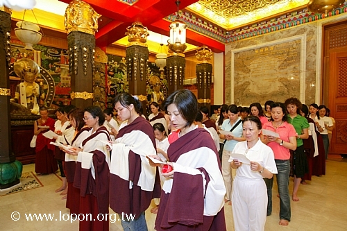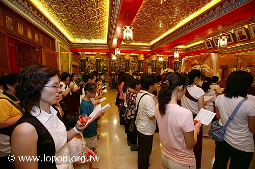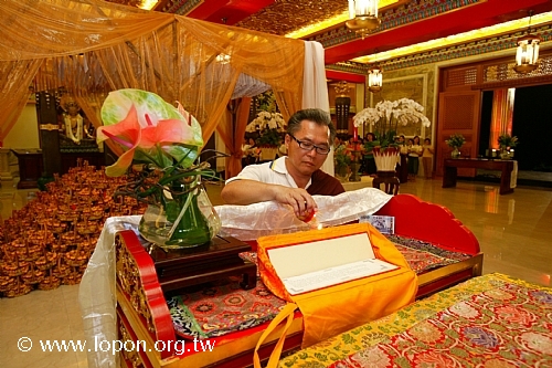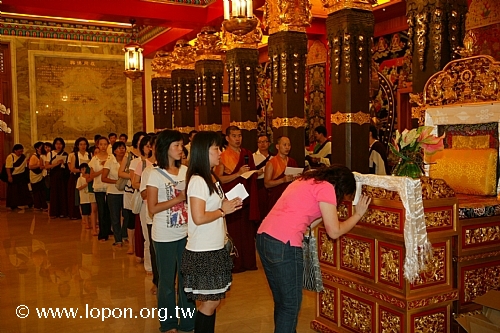 以額頭輕觸 導師法座,領受加持,並祈請 導師為先人啟開淨土之門。 |