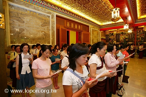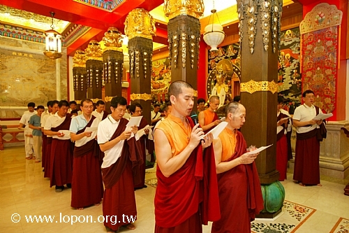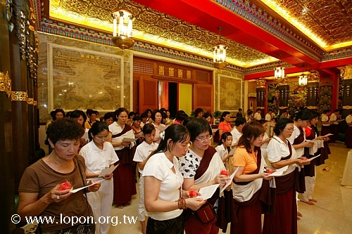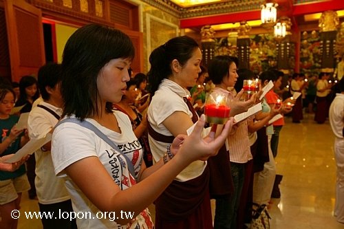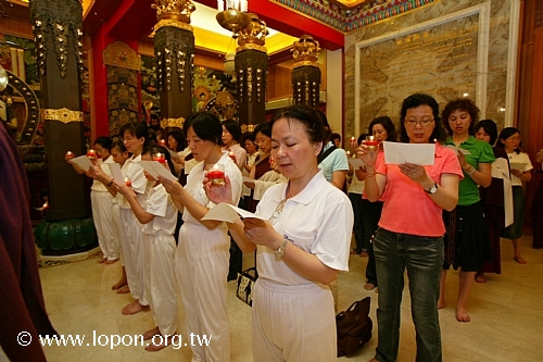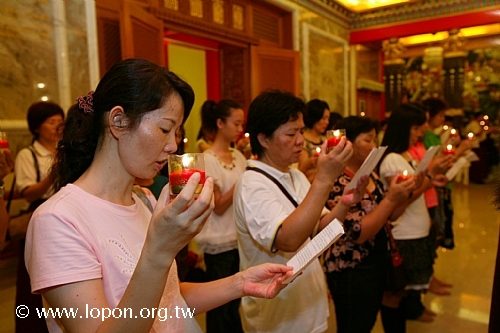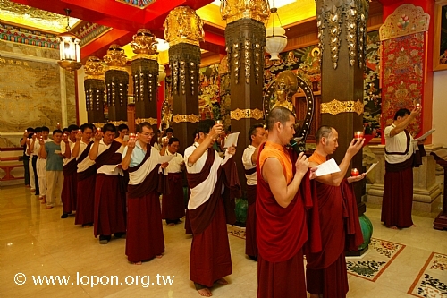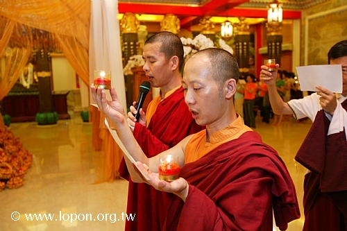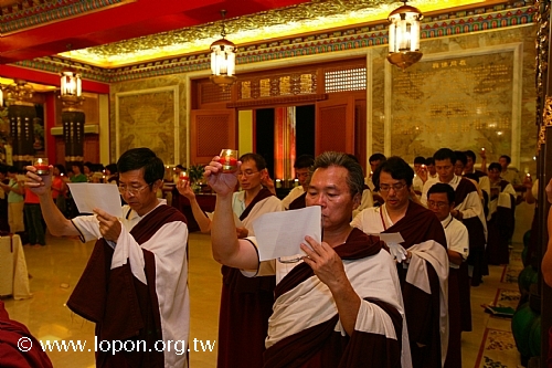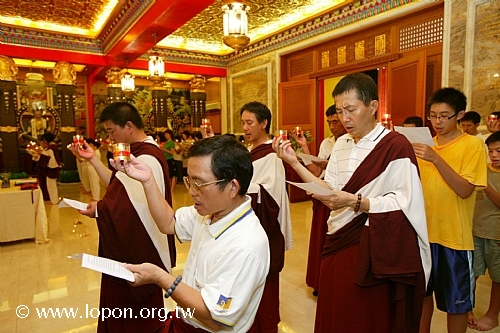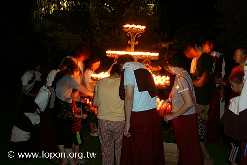 高舉油燈,為已故的親友摯愛虔誠祈禱,吟誦〈淨土供燈祈願文〉。 |