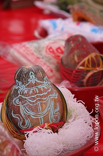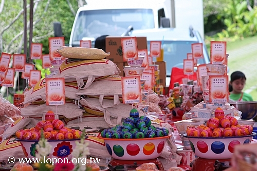 高雄那洛巴道場的彩繪供盆與「滇真摩尼寶」 豐盛的普渡供品