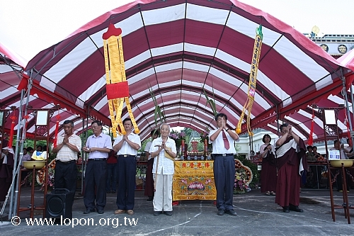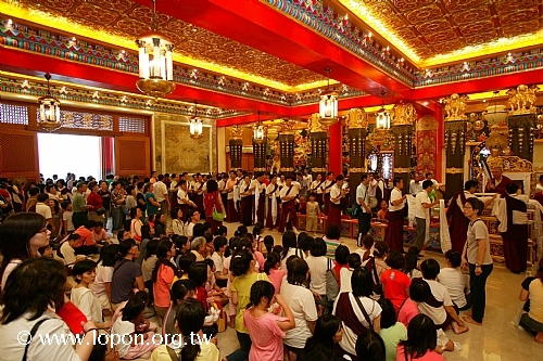 恭迎 導師進殿主法 導師登座修法,殿外廣場同步進行大普渡。 |