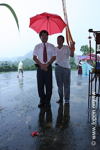當上香、敬酒二巡畢,普渡會場上空已是烏雲密佈,絲絲細雨轉為急促綿密,霎時風起雲湧勢不可擋,恰似各路好兄弟爭相前來赴會之勢,冥冥之中可以感知,這場法會將令一切孤魂幽靈歡心滿願。