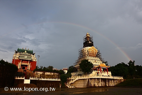從歸途車上外望,西邊有又大又圓的夕陽相隨,東邊是歷久不衰的彩虹相伴,一路上精神抖擻,雀躍不已,確信在諸佛菩薩庇祐加被下,噶居弟子在精進佛道與世俗事業上,悉得福慧增長、豐衣足食。![]()