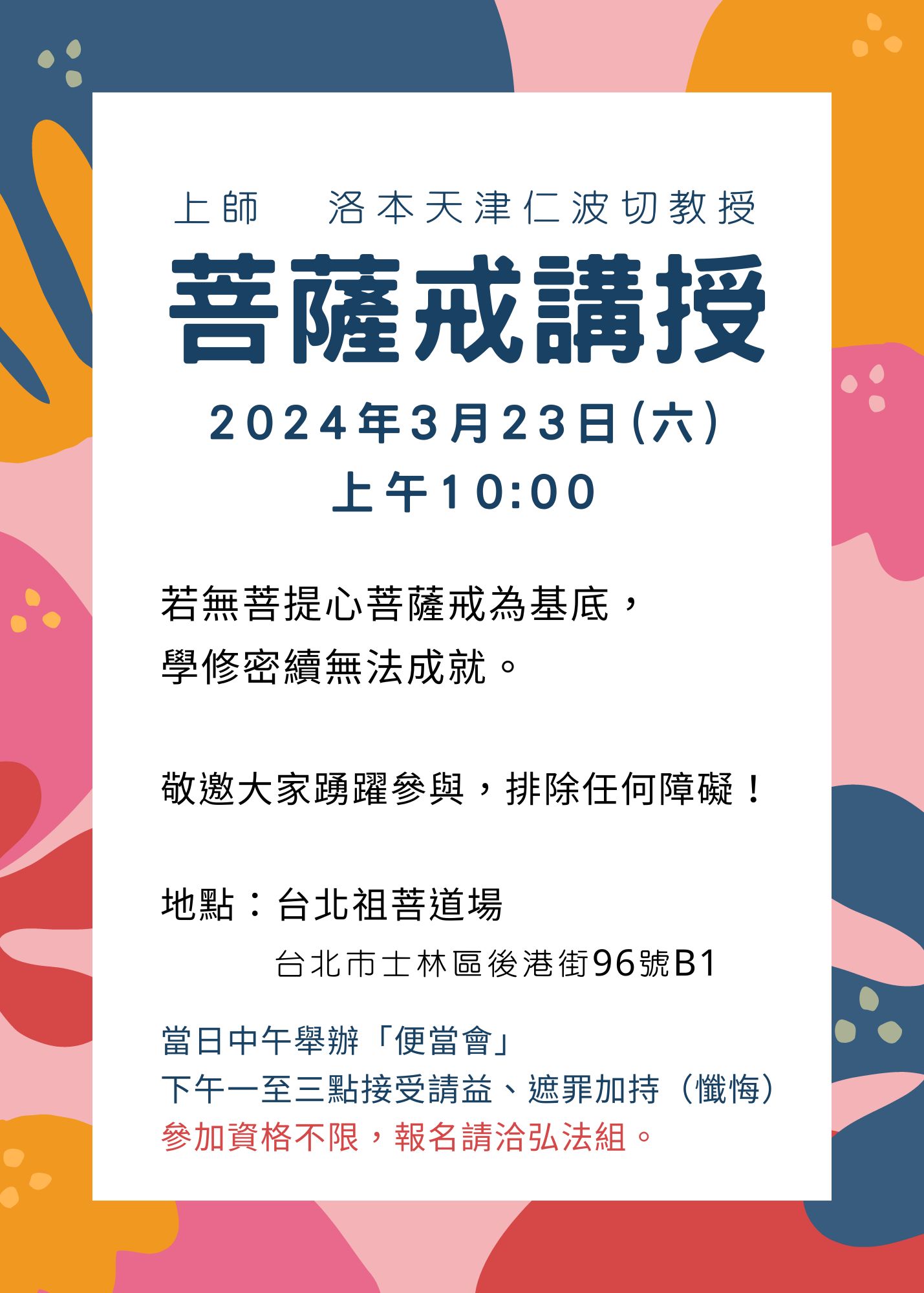 4.下午一至三點接受請益、遮罪加持(懺悔),請先報名,依序進行安排