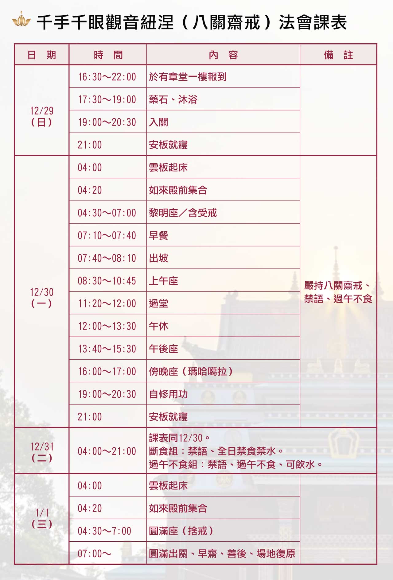一、報名資格:已受三皈依之善信,本寺金剛護法皆須參加。