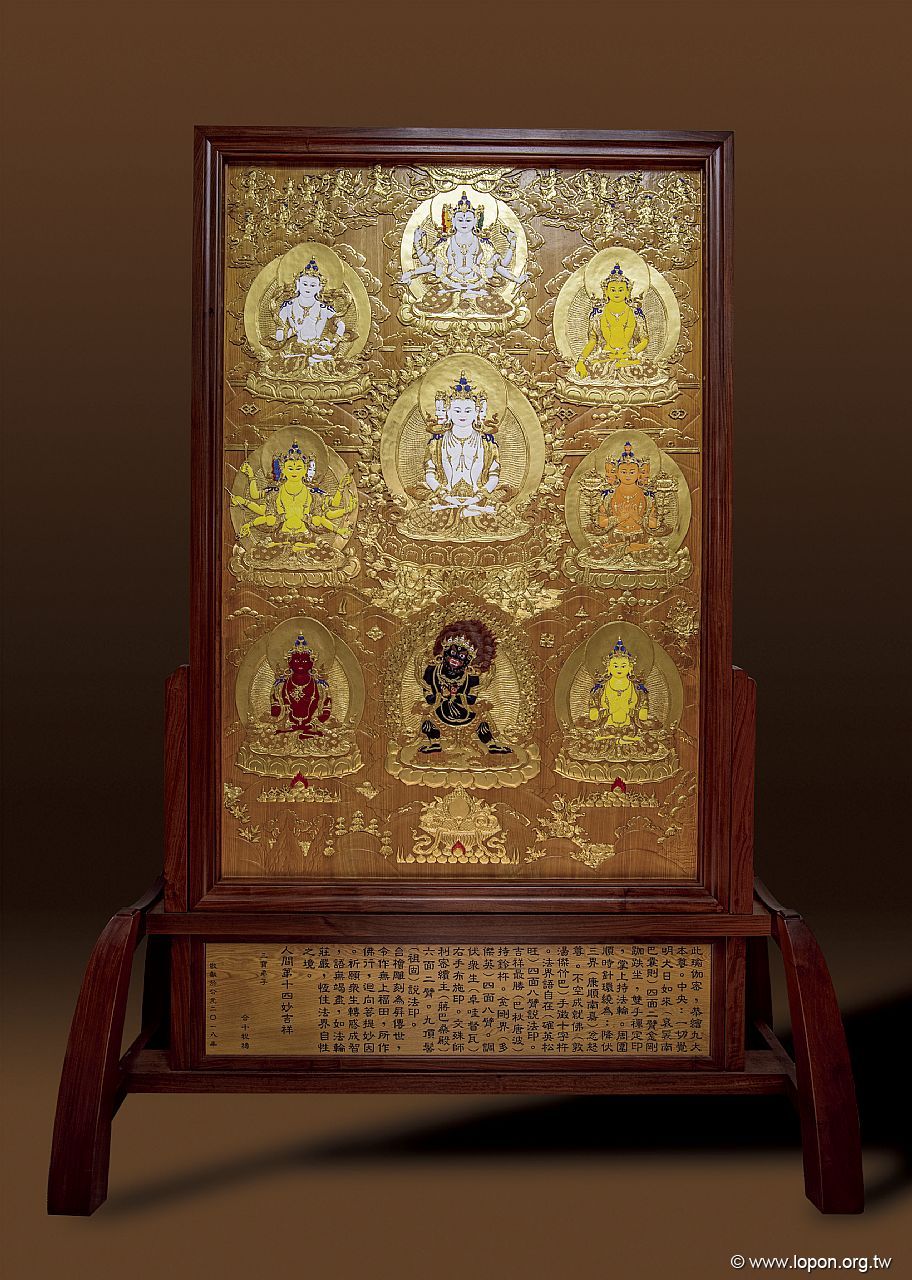 台檜雕刻為屏傳世,作無上福田,所作佛行,迴向菩提妙因。