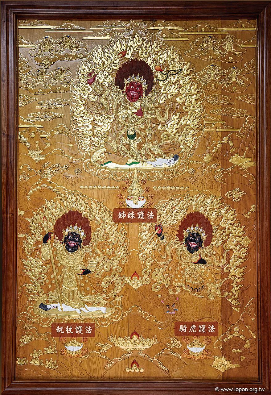 姊妹護法(哲巴江興)、執杖護法(袞波奔)、騎虎護法(袞波大馴)