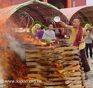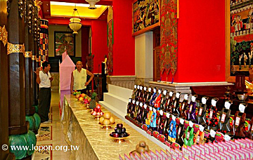 供僧功德勝 供僧、普度所當行 供僧的食物採外燴無妨,每一道素食應該由弟子親自端到桌上供養出家人,謂之齋僧,我認為這才是我們佛教徒應該做的。至於普度施食,則準備上百道菜 ,做為火供之用,這才符合金剛乘弟子所應該做的。 觀音山與四大金剛 道教辦中元普度一定要做觀音山,有些還要做很大的大士爺,大士爺頭上還有一尊小尊的觀世音。阿難禪定中所見的餓鬼,其實是觀音的化現,由他請佛說出放焰口的法門。 這裡的四大元帥是不正確的,我們是佛寺,不是道教寺廟,應當做出四大金剛,來年要糾正過來,否則就免了。 彌陀灌頂與儀軌教導 每個本尊的度亡法都很殊勝,但是對弟子們而言,大家大概不需要大日如來、金剛薩埵等等的度亡。最能夠跟大家的心相應的,就兩個:阿彌陀佛和觀世音。我不認為大家真的需要學那麼多。 有幾個法會的儀軌一定要學,一是浴佛法會的禮讚世尊及十六羅漢,這是經文,不需要口傳,最好能背誦起來;其次是阿彌陀佛儀軌,主儀軌的部分是喇嘛修,弟子也可以一起修,但要度亡時,僅由上師主法。度亡就像在炸東西,旁邊太多人,不但沒辦法幫上忙,還可能把滾燙的油打翻,麻煩就大了。 解脫的密法—頗哇 在上師的教導下,經過七天的精進修行後,頭頂梵穴就能插入吉祥草,許多人覺得這是不可思議的。無論是生前自行頗哇,還是臨終時經上師頗哇,火化之後,頭蓋骨通常不會碎掉,能保持完整,而且梵穴真有孔穴,這是令人感到不可思議的。金剛亥母也有頗哇法。可是最直接、方便的,就是彌陀頗哇法。經過這樣的說明之後,希望大家對阿彌陀佛生起無二的信心,並且發善願,好好修學,冥陽悉同。 報父母恩 水陸法會的緣起 噶瑪寺的三壇度亡 放焰口和水陸法會是以飲食為主,舉辦盂蘭盆會要同時放焰口、辦水陸法會。水陸法會比較廣,兼顧六道一切眾生,盂蘭盆會專度餓鬼和七世父母。我們將放焰口、水陸法會、盂蘭盆會彙整,制訂三壇度亡,這一點大家要了解。 以上向大家簡要說明放焰口、煙供、何為火供、盂蘭盆會的緣起、水陸法會的功德利益,希望今天在座者,皆能聽聞以上焰口、盂蘭盆會、水陸法會的緣起和功德,心生歡喜、隨喜。 明天開始舉行阿彌陀佛的度亡科儀,這段期間,每天我們會持誦彌陀真言,希望父母往生、尤其又有先人晉塔的弟子,應當發大心參加持誦真言,如是,自己的孝心、願心,加上上師的加持及諸佛的威德,當這三者不可思議的力量合而為一時,相信我們所要度的不是只有現世及七世父母,應該可以度盡更多過去生生世世的父母,與中陰的諸位善信。 開示畢, 上師帶領冥陽二眾回向聽聞功德,迎靈法會吉祥圓滿。 |