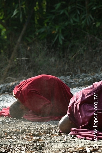 朝山要有山可朝,山中有佛。山有內和外,內在的山是諸位的金剛心,外在的山,即是噶瑪寺這座聖山。若以感恩的心,一面朝山,一面心中有所感動,感動於修行雖然這麼痛苦,但是我現在非常歡喜,留下歡喜感動的眼淚,如此,所受到的苦雖然與常人相同,但卻是兩種完全不同的感受!